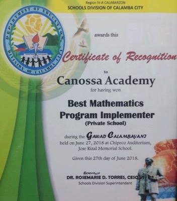 Best Mathematics Program Implementer (Gawad Calambayani 2018) By Canossa Academy Published June 29, 2018 Achievements Please follow and like us: 0