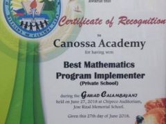 Canossa Schools Received “Commitment to Academic Excellence Award” in Partnership with the Center for Educational Measurement Inc. Canossa Academy – Calamba City (35 years) Canossa Academy – Lipa City (40...